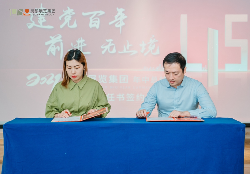 年中大會上大家暢所欲言的探討、精辟入理的分析將過往經驗凝聚成靈碩繼續前行的發展之基,本次會議明確了靈碩展覽集團三年發展目標及未來愿景,展覽主辦事業中心和展覽展示事業中心分別簽訂了業績責任書,面對接下半年的挑戰,做有準備的人,打必勝的“仗”!
